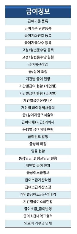 최종 계산 후에도 급.상여 조정이 가능하여야 하며, 이러한 결과를 기반으로 급여.인사.근태 등의 현황을 제공할 수 있는 Dash Board, EIS 등의 자료 제공은 기업 관리에 있어 많은 도움이 될 것입니다.