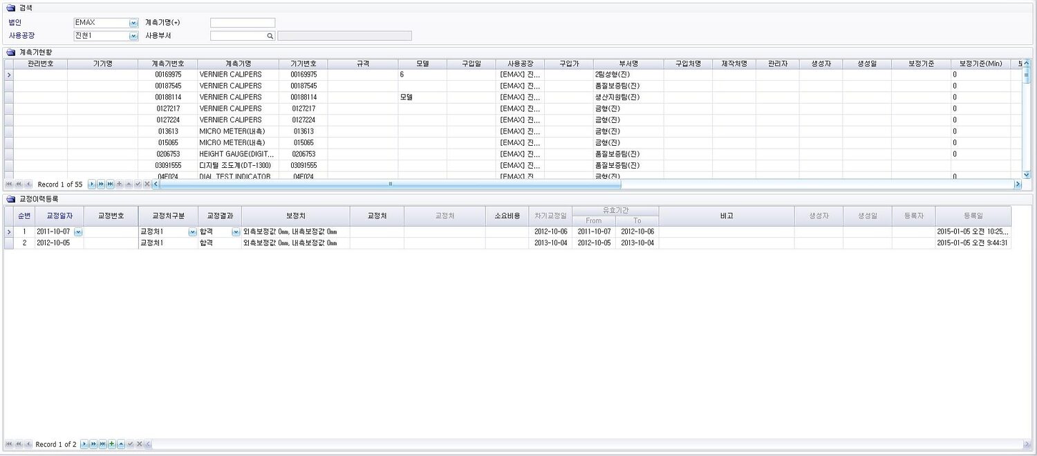 계측기 현황관리와 교정 일정관리 및 교정내역관리
