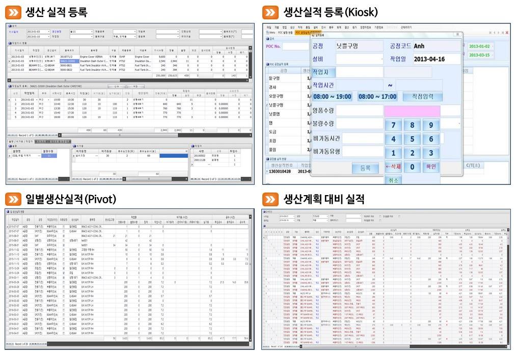 생산공정실적관리에서 가장 중요하게 인식되는 기능은 생산지시. 실적집계 , 생산성 분석일 것입니다. 입력을 최소화 하고 시스템 간 정보가 항상 일치하도록 관리해야 합니다.