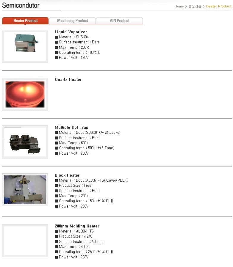 (주)티티에스는 2000년 설립하였으며, 반도체 생산장비에 적용되는 PE-Heater를 개발하여 양산화 하였고, 독자적인 기술을 바탕으로 국내 유수의 장비메이커와 부품업체에 공급하는 제품의 90% 이상에 대해 국내.외 특허를 보유하고 있습니다.