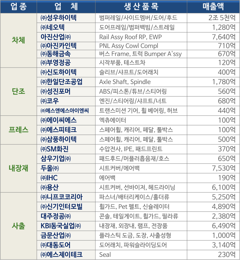 이맥스는 다양한 자동차 부품 세부 분야에서 성공적인 납품 실적을 보유하고 있습니다.
